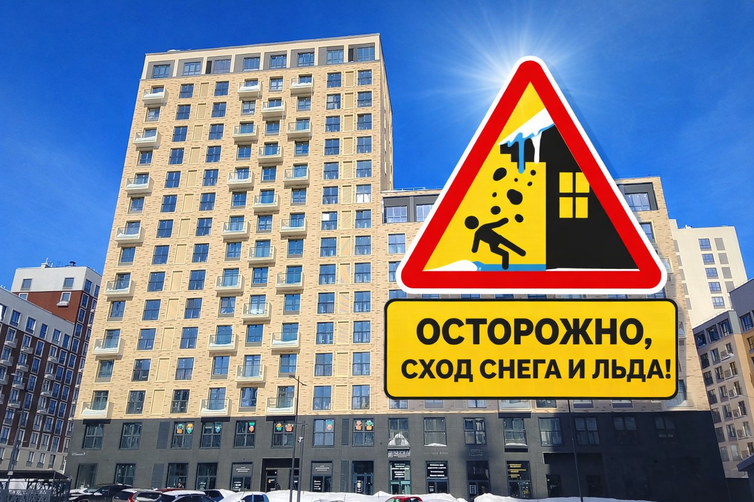 ⚠️Убедительная просьба почистить свои оконные отливы и балконы от снега и льда во избежание создания опасности для пешеходов.