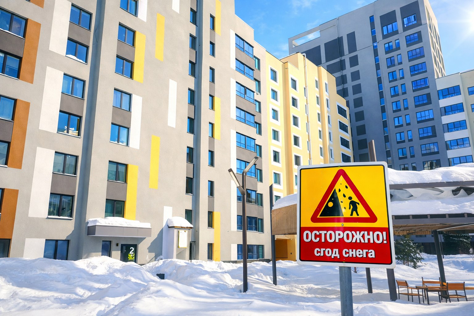 ❄️При передвижении вдоль домов просьба соблюдать осторожность при положительных температурах.